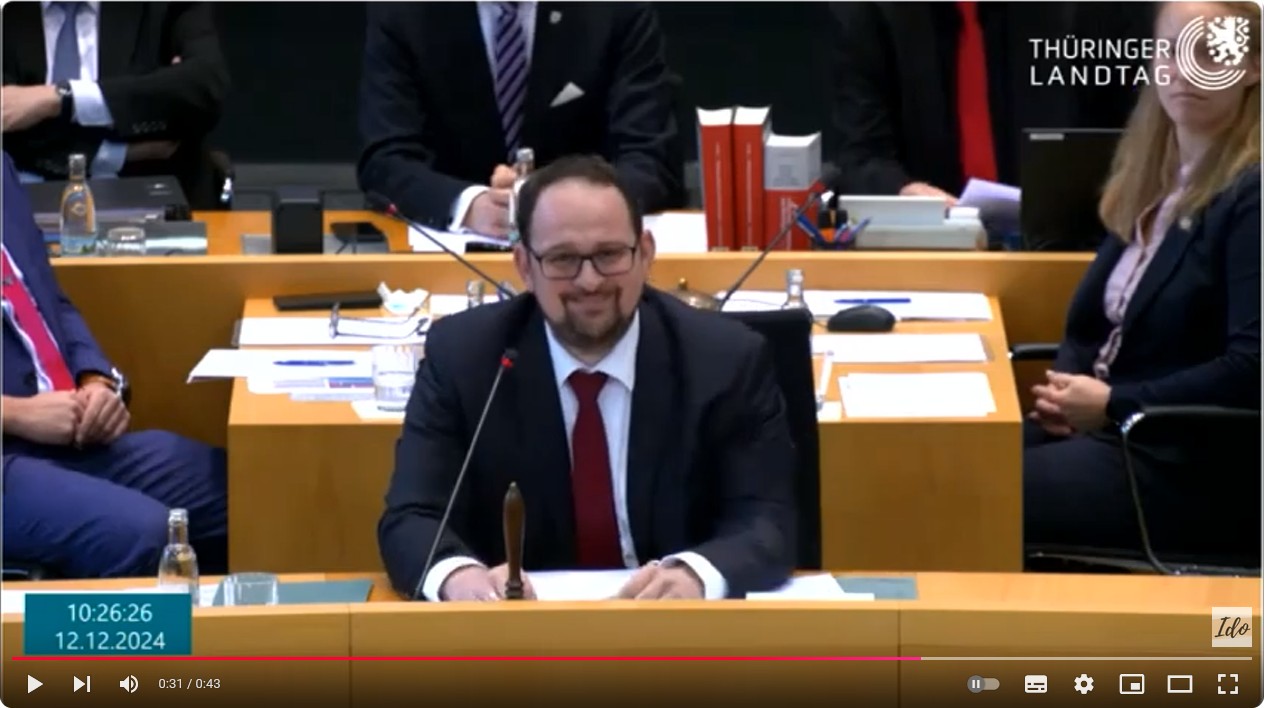Am 12.12.2024 wurde CDU-Mann Mario Voigt zum Ministerpräsidenten Thüringen gewählt. Dies war nur durch Stimmen der Linkspartei möglich, was auch innerhalb der CDU umstritten ist. Landtagspräsident Thadäus König, der selbst durch ein politisch umstrittenes Manöver gewählt wurde, verkündet die Wahlsieg Voigts, der im ersten Wahlgang die absolute Mehrheit der Stimmen erreichte. Dabei machte er eine auffällige verbale und optische Geste in Richtung von Voigt / CDU.