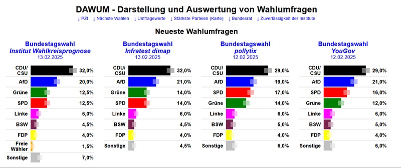 - Kleine Parteien: FDP, BSW und die Linke (alle nahe der 5%-Hürde)