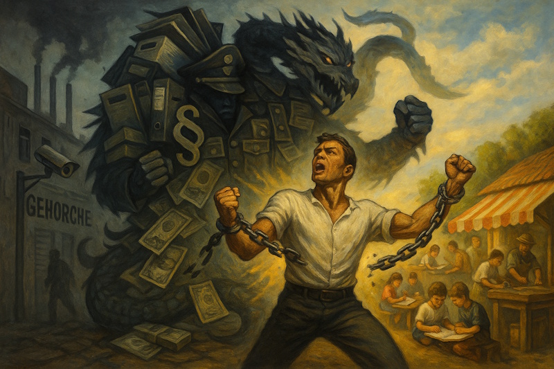„Der Staat ist die große Fiktion, mit deren Hilfe sich alle bemühen, auf Kosten aller zu leben.“ Dieser Satz fasst zusammen, woran viele nicht zu rütteln wagen: Der Staat existiert nicht als neutrale, wohlmeinende Instanz. Er ist die institutionalisierte Macht, die stets danach strebt, sich selbst zu erhalten – auch und gerade auf Kosten der Freiheit des Einzelnen.