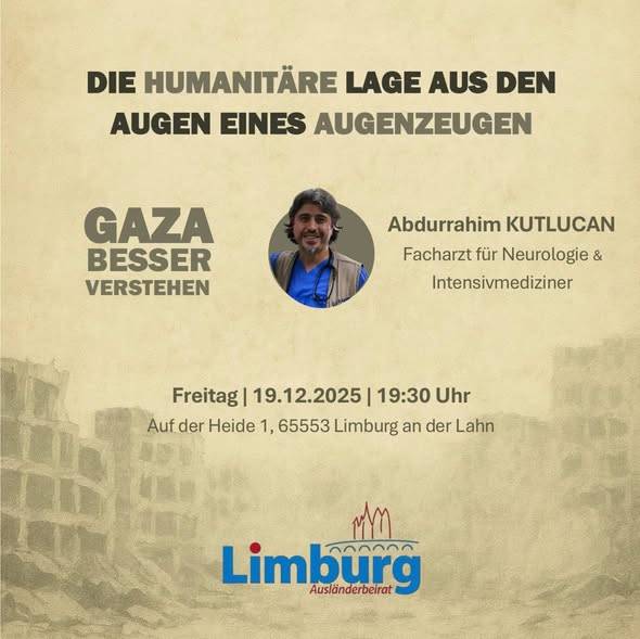 Daneben gehört auch Yusuf Kutlucan, der "Spitzenkandidat der Freien Wähler Limburg für den Ausländerbeirat", als stellvertretender Vorsitzender dem Gremium an. Weiteres Mitglied ist Ramazan Kutlucan. Ob dieser mit Yusuf verwandt ist, ist uns nicht bekannt. Ebenso wenig wie das Verhältnis von Yusuf mit Abdurrahim Kutlucan, welcher am 19.12.2025 den Vortrag gehalten hat. Zweifel an der Neutralität des Ausländerbeirats der Stadt Limburg werden durch die Namensgleichheit jedoch nicht unbedingt geringer. Vielmehr rückt das Netzwerk um Yüce und Kutlucan eher ins Blickfeld.
