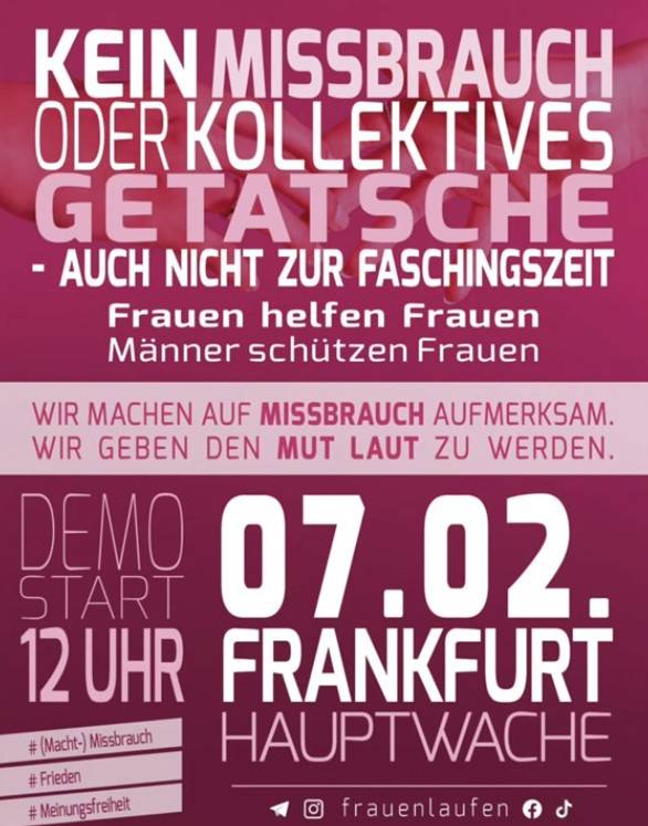 Ein Bericht von Thomas Espey von Herborn Steht Auf wirft ein irritierendes Licht auf den Umgang mit einer Demonstration, die sich explizit dem Schutz von Frauen und der Thematisierung von Gewalt gegen Frauen widmete. Beim sogenannten Frauenlauf Frankfurt standen Berichte über Vergewaltigung, Massenvergewaltigung und Pädophilie im Mittelpunkt – vorgetragen von betroffenen Frauen selbst.