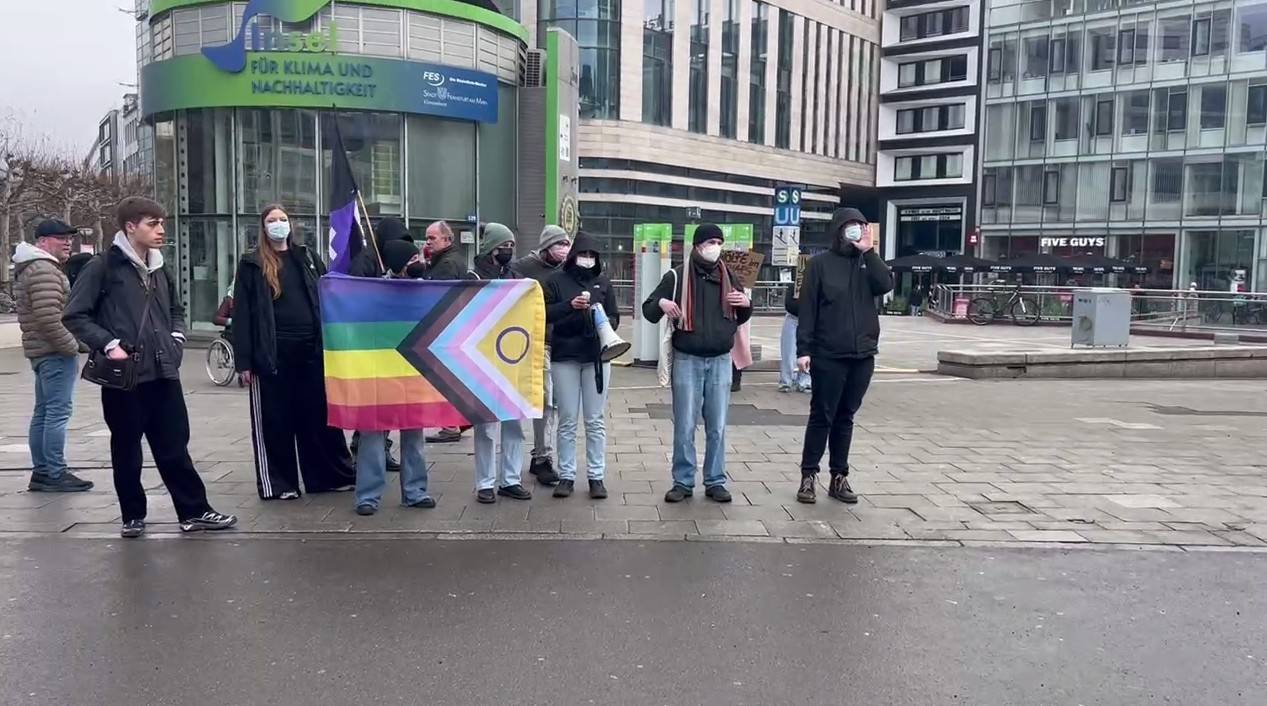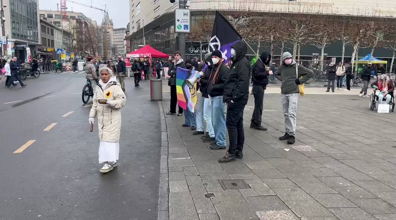 Die Situation eskalierte jedoch weiter: Die Störerinnen wurden zwar auf die gegenüberliegende Straßenseite verwiesen, doch dort schlossen sich vermummte Anhänger der Antifa an. Mit Megafonen und lautstarken Rufen wurde die Kundgebung weiter behindert – ohne sichtbares Eingreifen der Polizei.