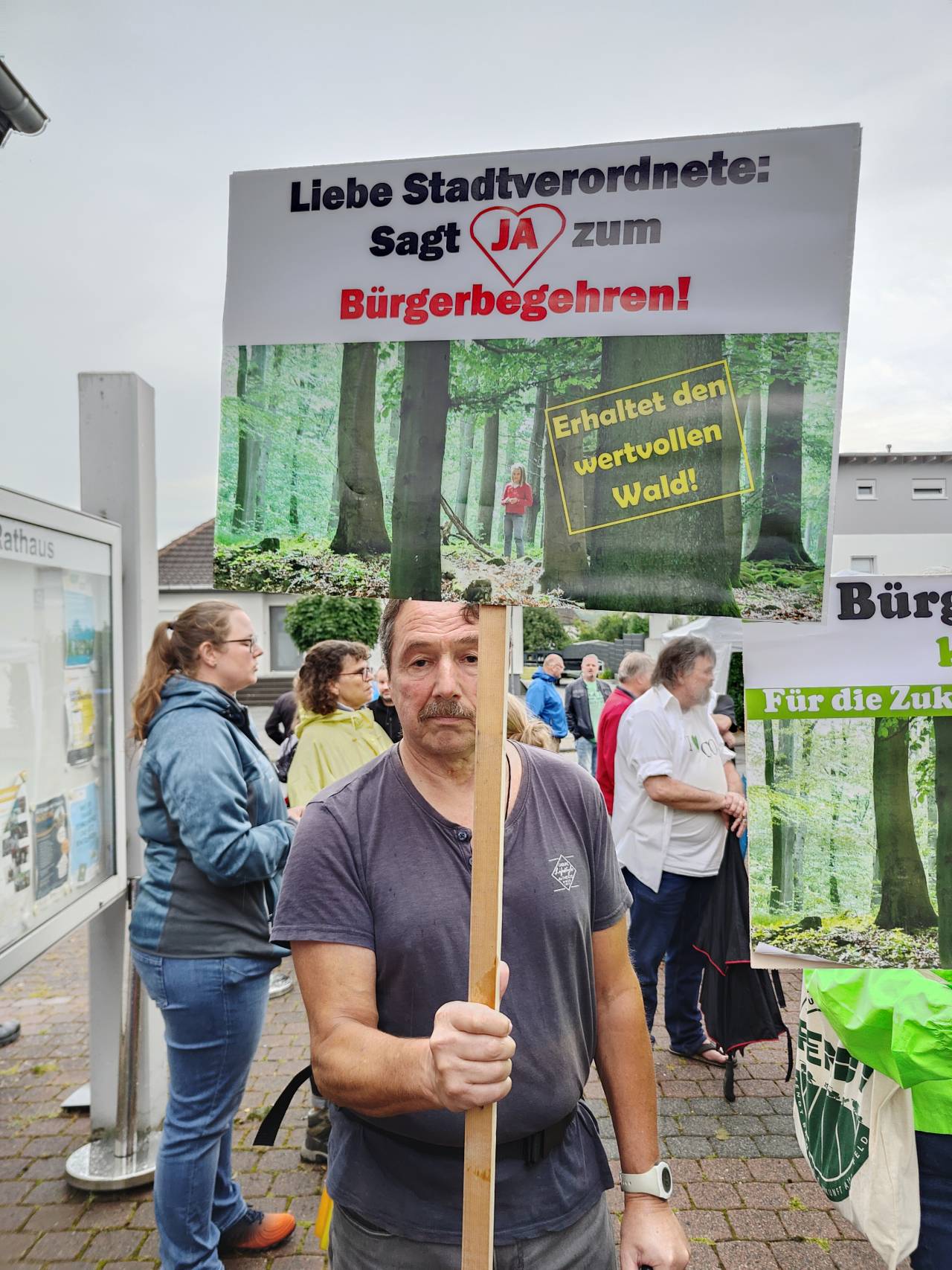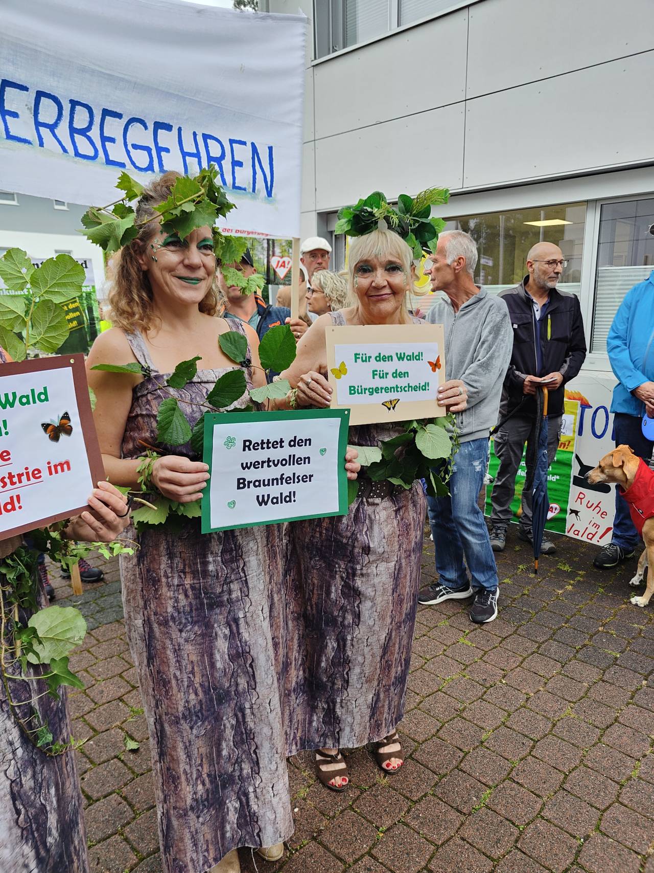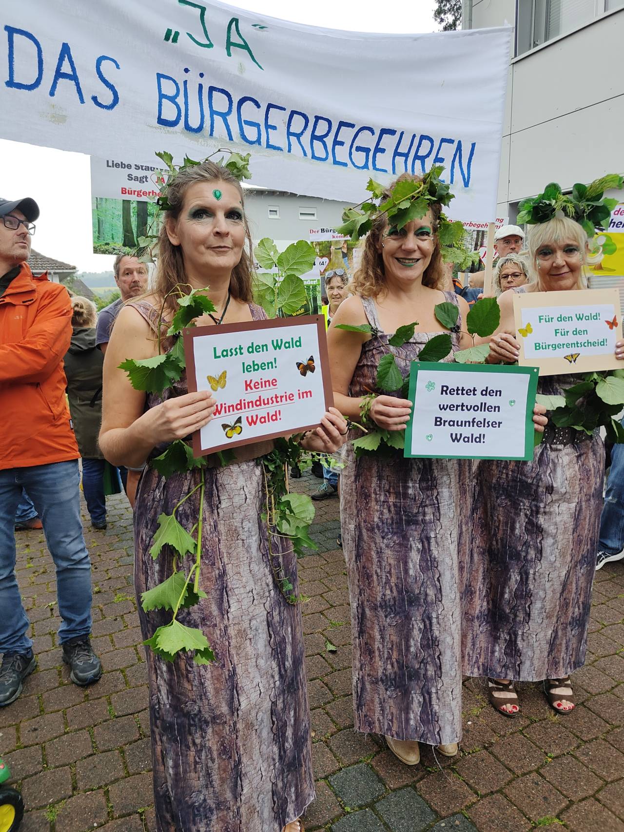 Braunfels - Am 28.08.2025 tagte die Braunfelser Stadtverordnetenversammlung. Auf der Tagesordnung: der Plan des Magistrats, im Wald bei Tiefenbach fünf Windräder zu errichten und das Begehren von mehr als 2.000 Braunfelsern Bürgern, in dieser Frage über einen Bürgerentscheid mitbestimmen zu dürfen. Im Vorfeld der Sitzung fand vor dem Braunfelser Rathaus eine Demonstration verschiedener Bürgerinitiativen statt, die sich unter dem Motto "Rettet Tiefenbachs Wälder" zusammengeschlossen haben und ein Bürgerbegehren initiiert haben.