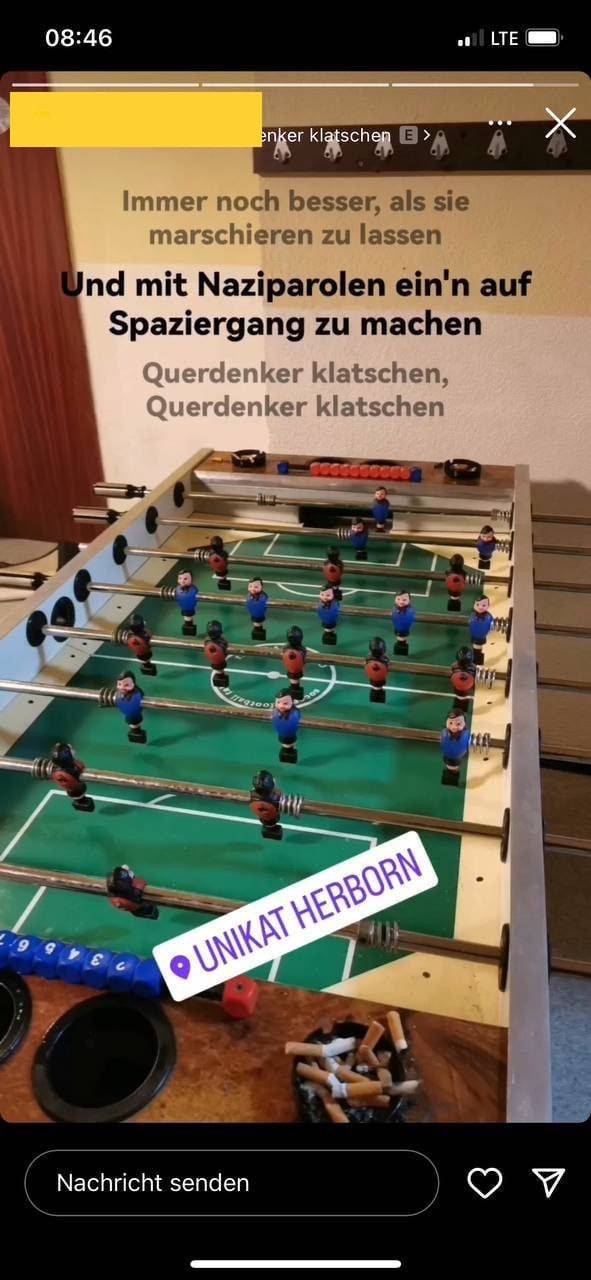Die Worte hat Lingenberg nicht selbst erdacht, sich dieser aber in seinem Beitrag sehr wohl zu Eigen gemacht. Zudem ergänzte er die Textzeile mit einer Ortsmarkierung auf die Gaststätte "Unikat", dem Ort sowohl der verwendeten Foto-Aufnahme von Lingenberg (sein Post bestand aus einem Foto samt Text; liegt der Redaktion vor), als auch der Treffpunkt der Initiative "Herborn Steht Auf", die als "Querdenker-Truppe" Lingenberg und vielen seiner Parteigenossen ein Dorn im Auge war (und ist). Solche "Feindmarkierungen" können schnell mal zu unbedachten Gewaltaktionen der Antifa-Szene führen. Umgekehrt gelten allein solche Feindmarkierungen schon als Straftat. Wehe ein linker Politiker würde von einem "Rechten" so markiert werden...