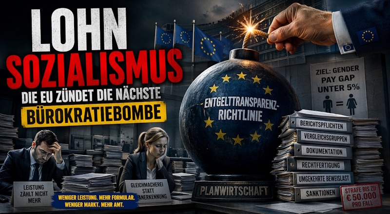 Die Europäische Union hat ein neues Lieblingsspiel entdeckt: Sie simuliert Gerechtigkeit, indem sie Märkte reguliert, bis von ihnen nichts mehr übrig ist. Mit der Entgelttransparenzrichtlinie wird nun der nächste Großversuch gestartet – ein Frontalangriff auf die Vertragsfreiheit, getarnt als moralisches Fortschrittsprojekt.