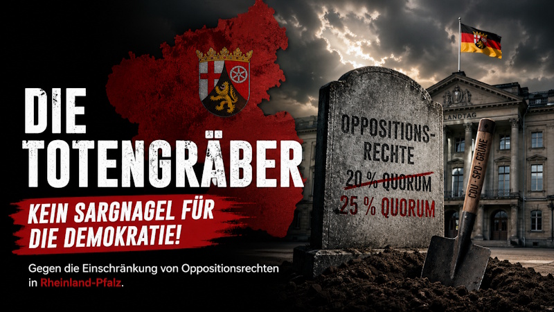 Die Bildsprache von dietotengraeber.de ist hart. Sie arbeitet mit moralischer Zuspitzung und politischer Empörung. Doch gerade weil die geplante Änderung in Rheinland-Pfalz so offenkundig mit der neuen Sitzverteilung zusammenhängt, verfängt diese Zuspitzung. Die Kampagne richtet sich nicht gegen Demokratie, sondern gegen ein Ansinnen, das im Namen des Demokratieschutzes demokratische Kontrollrechte schwächen kann.