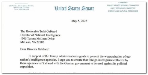 Washington - In einem bemerkenswerten Brief an die US-Geheimdienstchefin Tulsy Gabbard kritisiert der US-Senat die Einschätzung des Bundesamtes für Verfassungsschutzes (BfV) in Bezug auf die AfD und weist die Direktorin der CIA an, die nachrichtendienstliche Zusammenarbeit mit dem BfV in Bezug auf ein mögliches Ziel "AfD" einzustellen. Hier ist die vollständige und wörtliche Übersetzung des Briefes ins Deutsche.