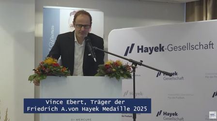 Weimar - Der Komiker, Physiker und Kabarettist Vince Ebert wurde mit der Hayek-Medaille 2025 der Friedrich A. von Hayek-Gesellschaft ausgezeichnet. In seiner Rede zur Preisverleihung lieferte Ebert eine provokante und fundierte Analyse des Zeitgeistes, in der er die Illusion der Planbarkeit komplexer Systeme und die zunehmende Unmündigkeit der Gesellschaft kritisierte.